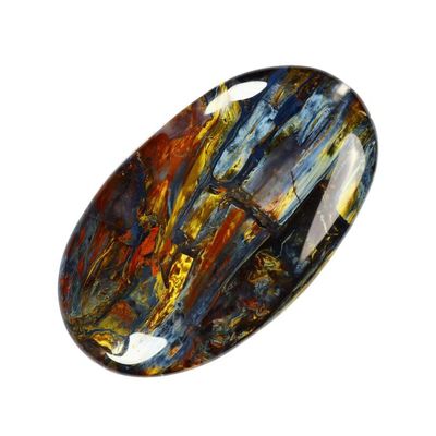 Currently there are only two known sources of pietersite; China and Africa. These two forms of pietersite are similar but still somewhat different from each other. The Chinese Pietersite’s fibrous mineral is a magnesium-rich alkalic amphibole. The African (Namibian) variety is mainly crocidolite. Colors include various blues, golds and reds, that may appear together or alone. Blue is the rarest color, followed by red. The blues range from a baby blue to dark midnight hue. Golds can be light to very deep and rich, sometimes having a reddish hue. All fibrous color variations will have a superb and striking chatoyancy, the bright and subtly changing shimmer of color that moves along the surface of a gemstone as it is viewed from varying angles.